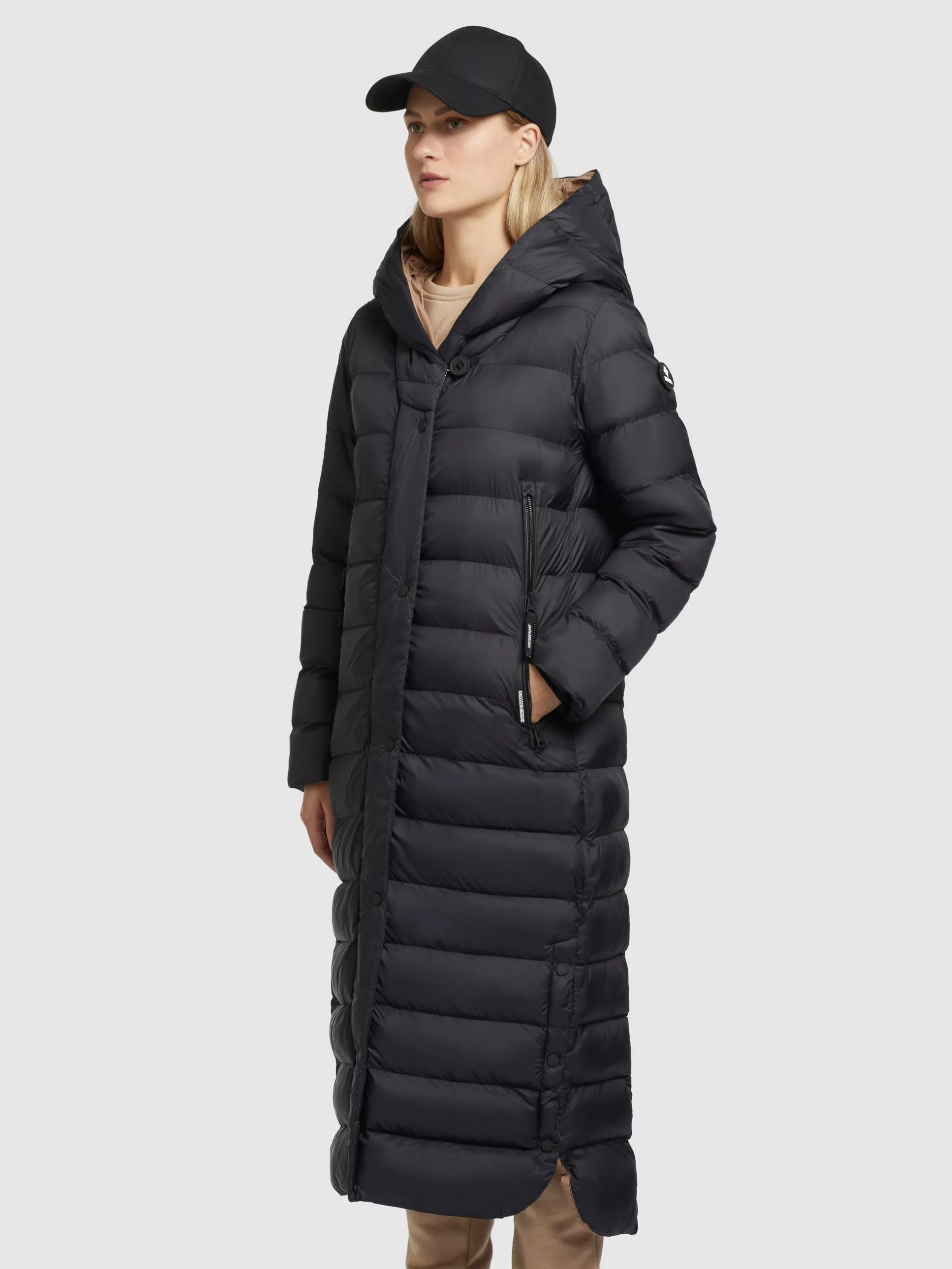 Leicht glänzend und mit einem wadenlangen Schnitt bist du mit dem khujo Mantel DIWANA2 SOFT von Kopf bis Fuß kuschelig warm eingepackt. Einen modischen Akzent setzt bei diesem Steppmantel das Futter im Farbkontrast. Dank dem Zwei-Wege-Reißverschluss und seitlichen Schlitzen mit Magnetknöpfen ist bei DIWANA2 SOFT ein Maximum an Bewegungsfreiheit gewährt. Ein variables Klett-Patch am Ärmel, große Reißverschlusstaschen mit Fleecefutter und elastische Abschlüsse am Ärmelfutter komplettieren das Design.