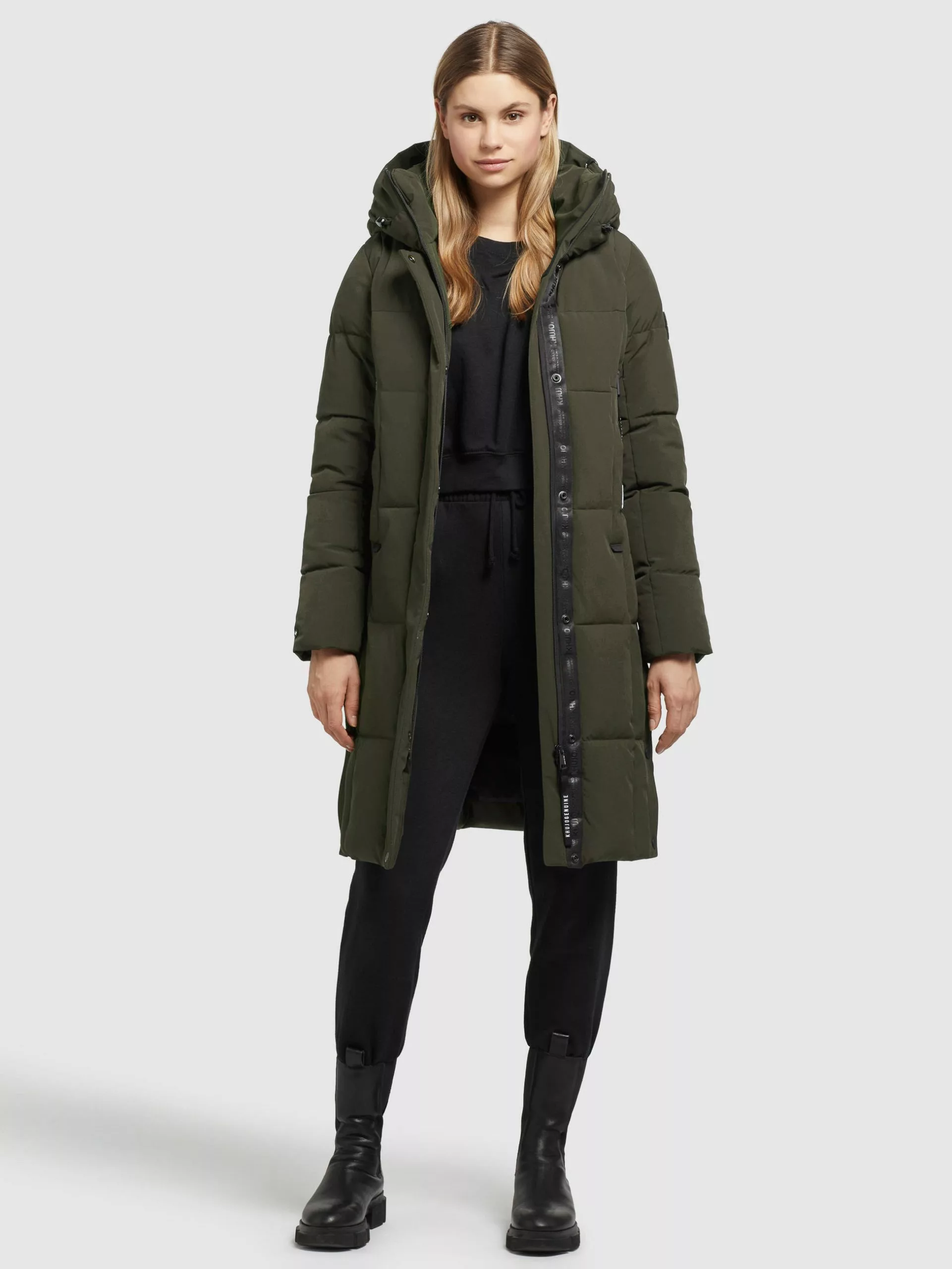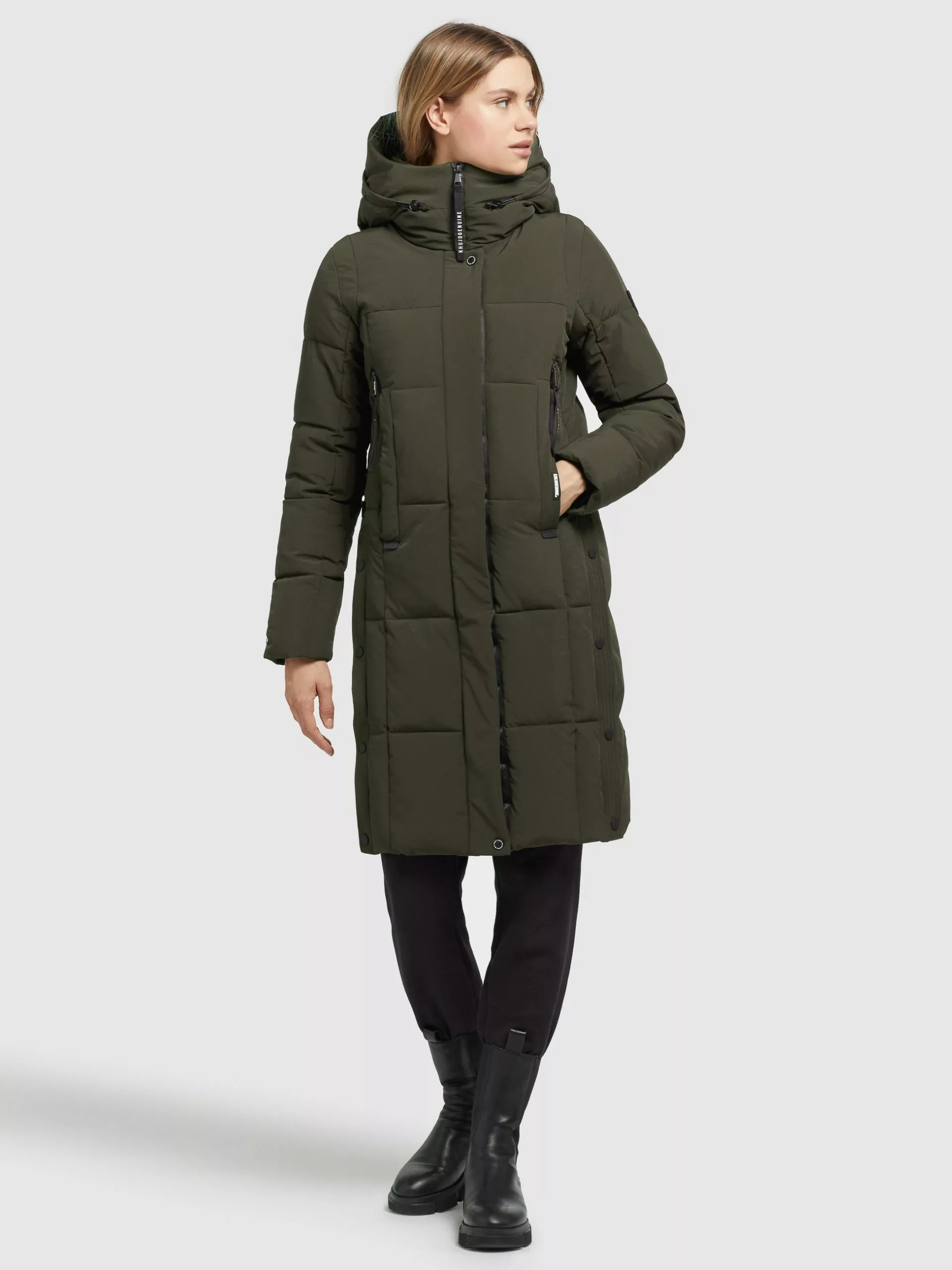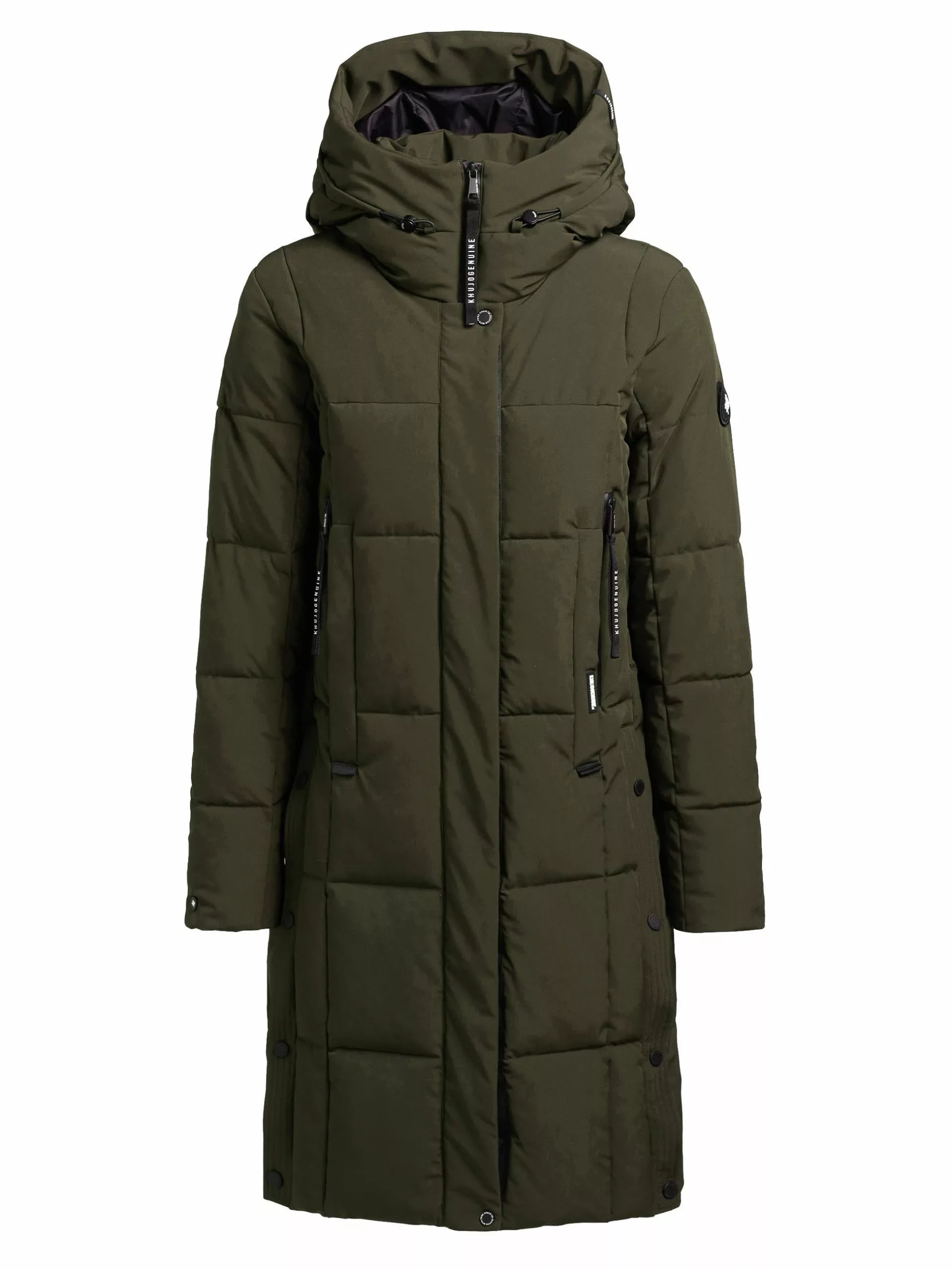 Die große, verstellbare Kapuze mit innenliegendem Stehkragen wird bei dem khujo Mantel NAMITA zum Eyecatcher. Ein Zwei-Wege-Reißverschluss, elastische Abschlüsse an den Ärmelenden, Taschenbeutel aus Fleece sowie elastische Kordelzüge an der Kapuze und seitliche Schlitze mit Druckknöpfen komplettieren das Design dieses Steppmantels. Kleinigkeiten lassen sich in den Reißverschlusstaschen mit wasserabweisender Beschichtung, Eingrifftaschen und einer verschließbaren Innentasche prima verstauen.